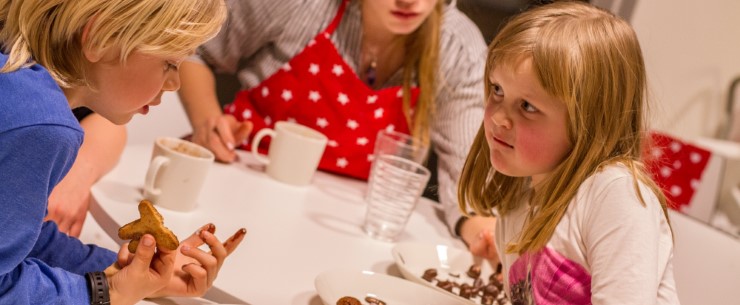 Vi inviterte fire barn til å sitte i vårt ekspertpanel. De skulle både være med å bake og smake på mandeltopper, peppermynteknapper, pepperkaker og marsipan. I tillegg fikk de servert lussekatter som skulle smakstestes. Panelet bestod av: Oscar Brønmo (8), Vilde Skobba (13), Maria Skaslien (13) og Sara Messel (7).