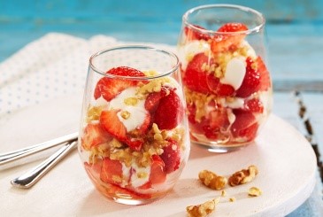 Jordbær med gresk yoghurt og valnøtter