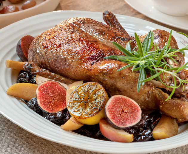 Helstekt and med eple, svisker og fiken