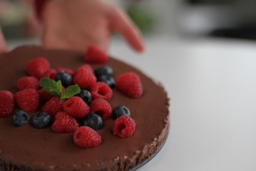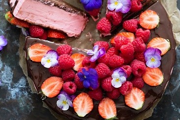 Bringebærkake med ostekrem