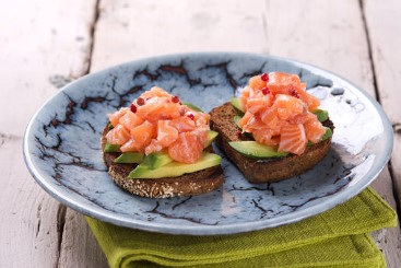 Toast med laksetartar og avokado