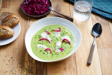 Brokkoli- og ertesuppe med torsk
