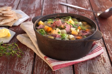 Røkt lammelår med stuede grønnsaker