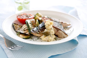 Grillet makrell med squash og tomat