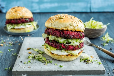 Rødbeteburger med grønnkål