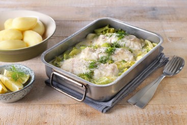 Steinbit i form med kremet purre