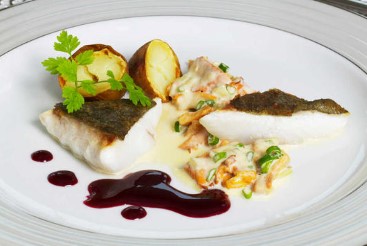 Stekt skrei med rødvinssaus