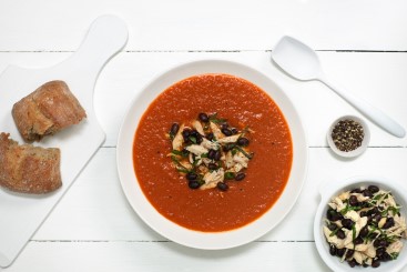 Tomatsuppe med kylling, bønner og basilikum