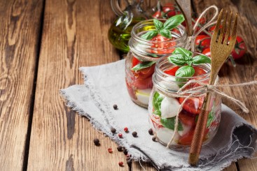 Tomat- og mozzarellasalat på glass
