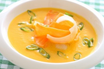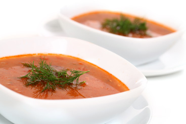 Tomatsuppe med sellerirot, basilikum og parmesan