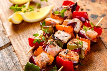 Drypp gjerne noen dråper sitron over grillspydene og server dem sammen med mager kesam.