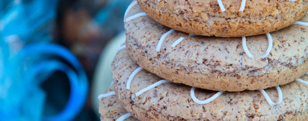 Stek kransekakeformene på et stekebrett midt i ovnen i ca. 10 minutter. Ta ringene ut av formene og over på rist. La de bli helt avkjølt.