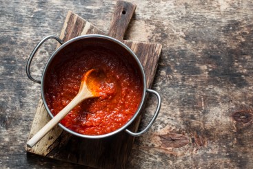 Surr finhakket løk og hvitløk i olje. Tilsett krydder og la det surre med i oljen et par minutter. Ha i hakkede tomater og vann tilsvarende 1 boks med tomater. Tilsett salt, pepper og la kanelstangen trekke med. Strø over fersk koriander og bladpersille ved servering.