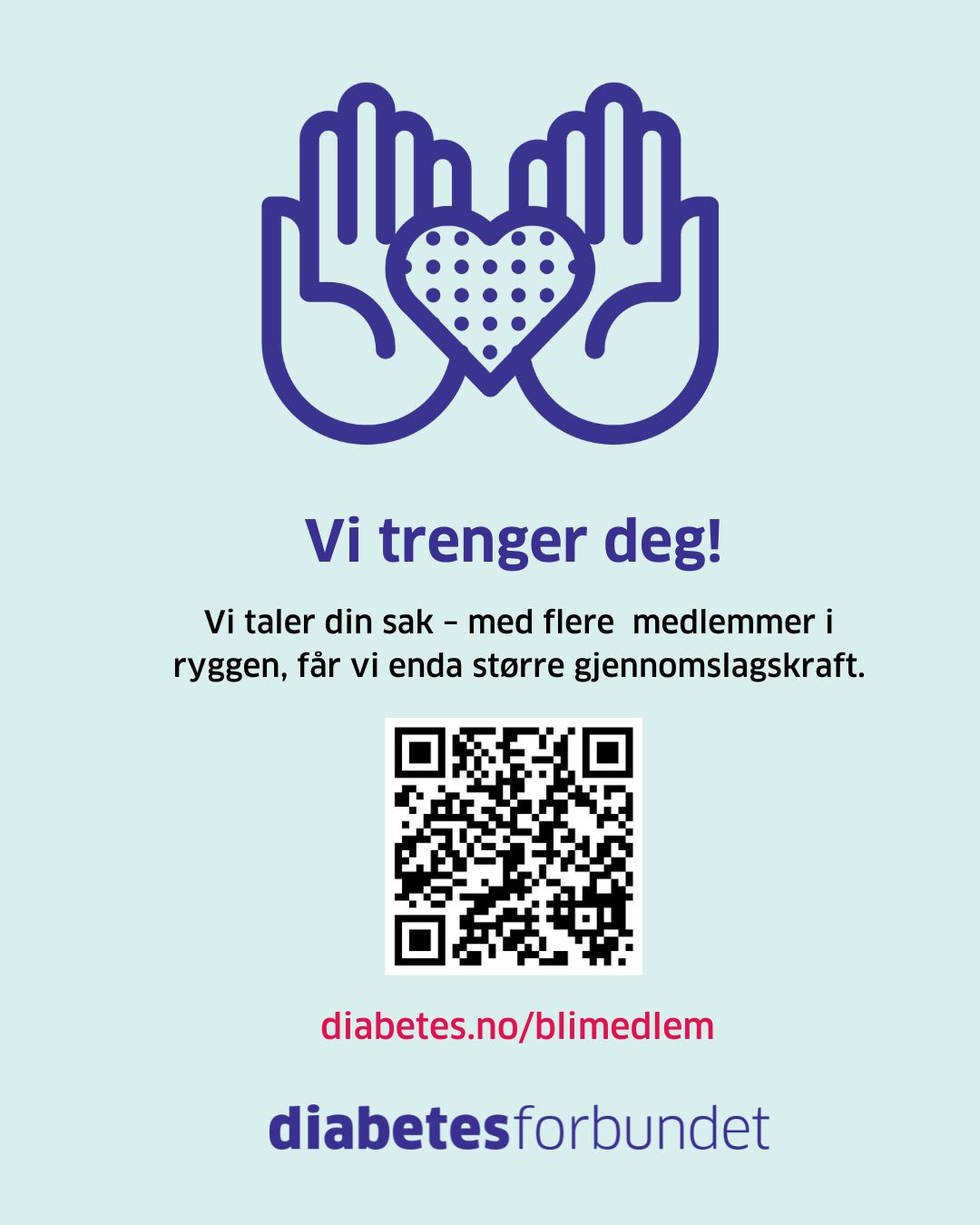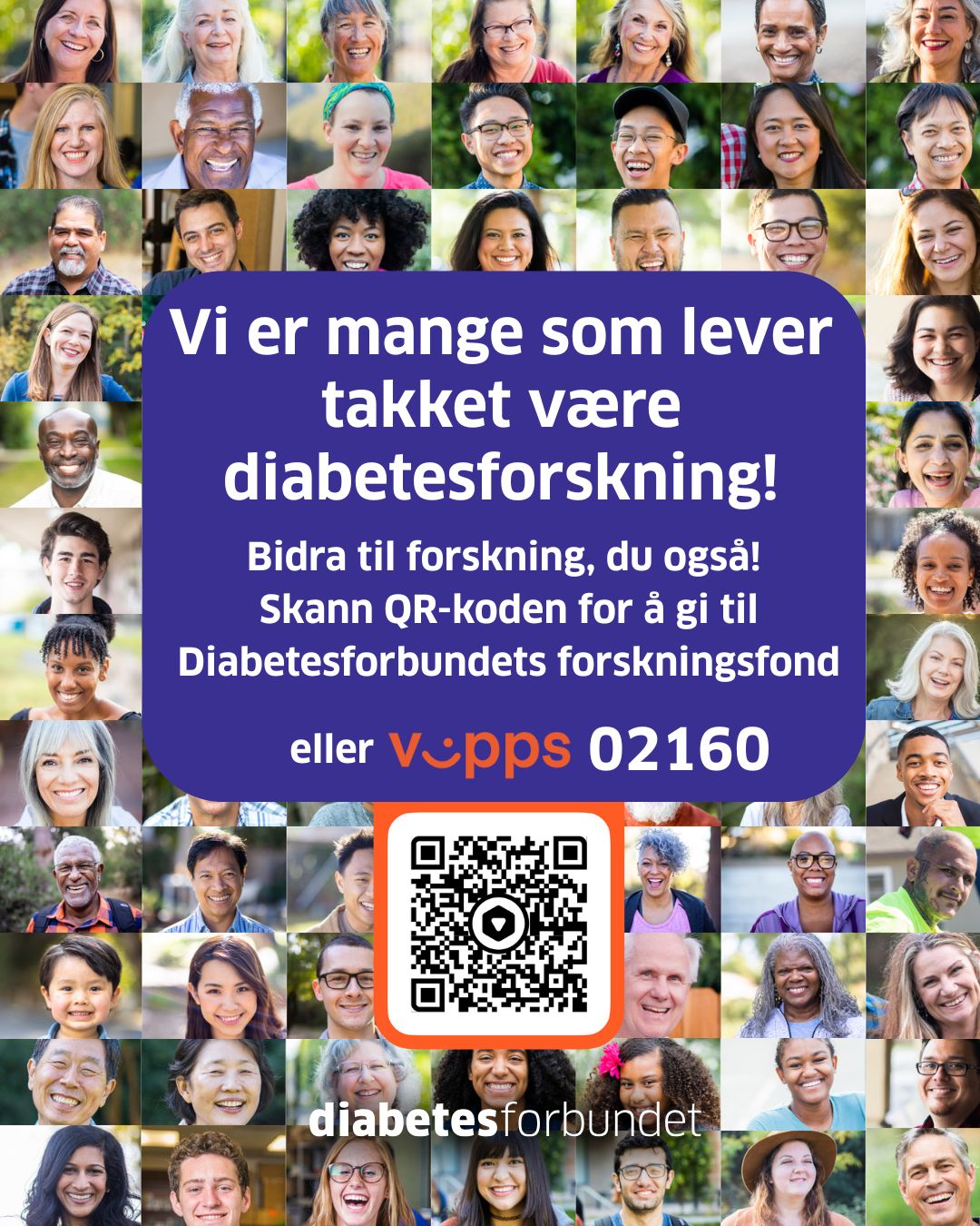 Gi til Diabetesforbundets forskningfond ved å skanne QR-koden, Vipps til 02160 eller gå til bidra.diabetes.no/forskning