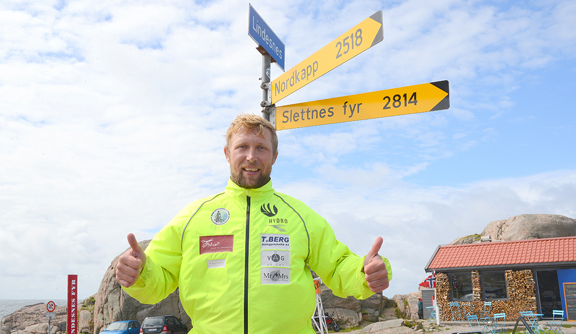 33-åringen fra Holmestrand hadde bare 30–40 treningsmil bak seg på sykkelsetet da han startet på Nordkapp onsdag 28. juni. Den gode fysiske formen hadde han hovedsakelig fra kickboksing og fotball. Nå kan han legge sykling til på listen.