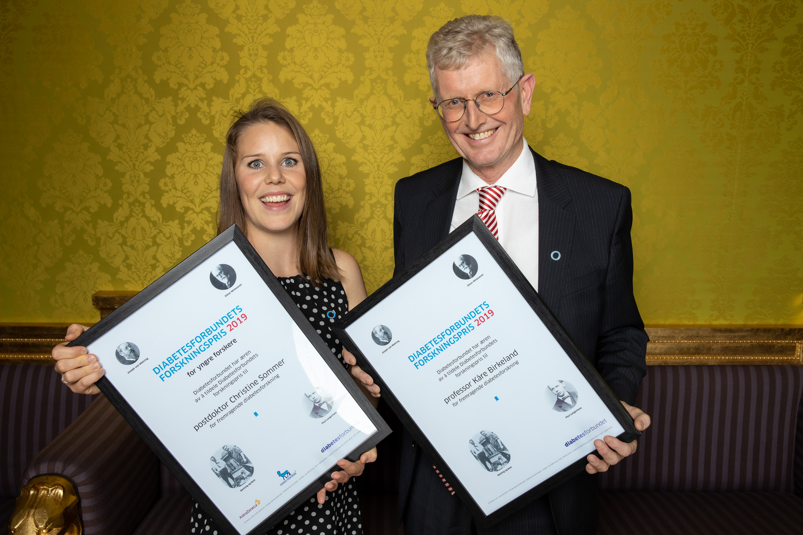 Kåre I. Birkeland og Christine Sommer er årets vinnere av Diabetesforbundets forskningspriDiabetesforbundet har siden 2017 delt ut forskningsprisen for fremragende arbeid innen diabetesforskning. Siden 2018 har det også vært delt ut en pris for yngre forskere under 40 år, for å stimulere til rekruttering til forskning på dette feltet.