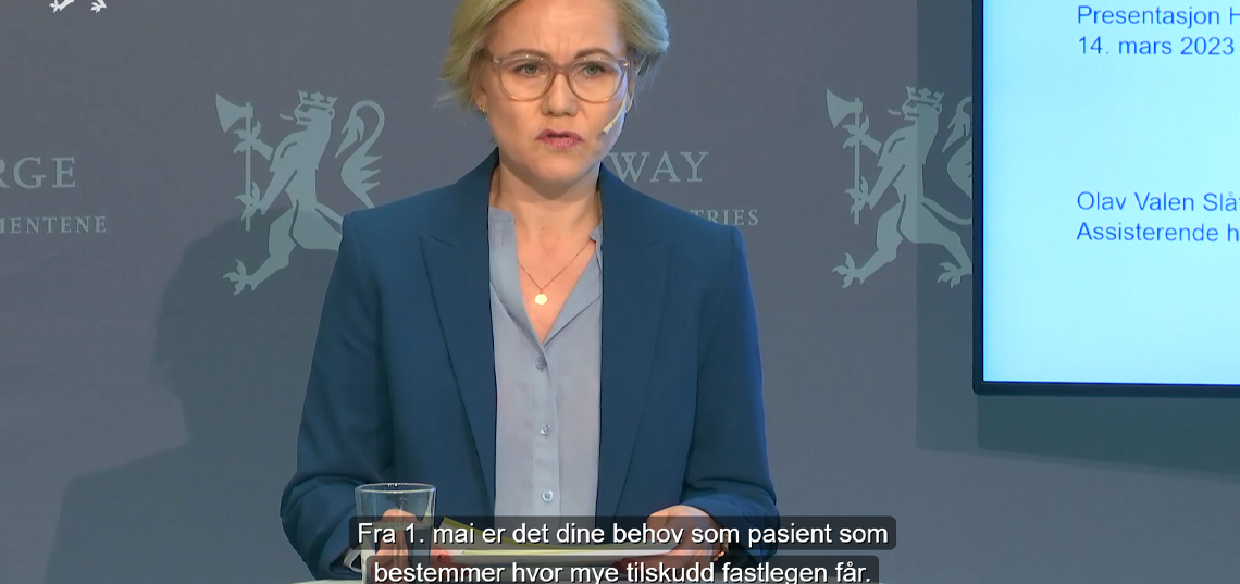 – Har du, som pasient, stort behov for oppfølging, får legen mer penger. Det får de for å sette av nok tid til deg og gi deg mer oppfølging, forklarte statsråd Kjerkhol.