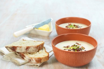 Kremet sellerirotsuppe med sprøstekte selleristrimler