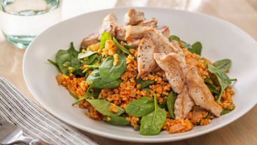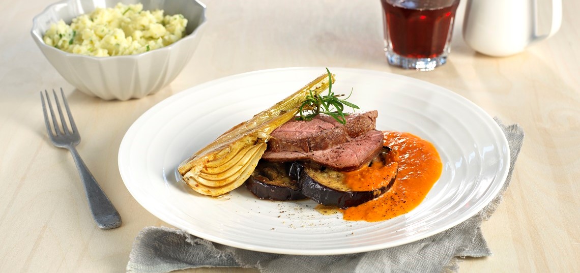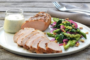 Krydderstekt ytrefilet av svin med spinat- og nøttesalat