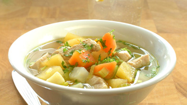 Tomatsuppe med sellerirot, basilikum og parmesan