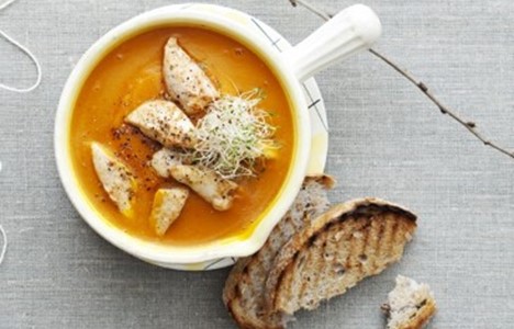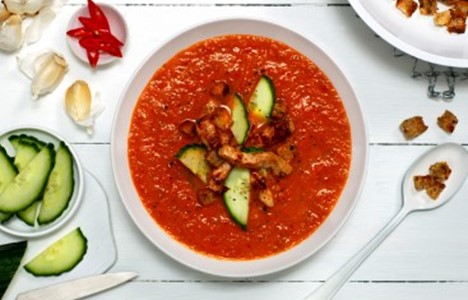 Tomatsuppe med sellerirot, basilikum og parmesan