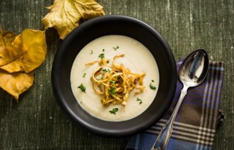 Kremet sellerirotsuppe med sprøstekte selleristrimler