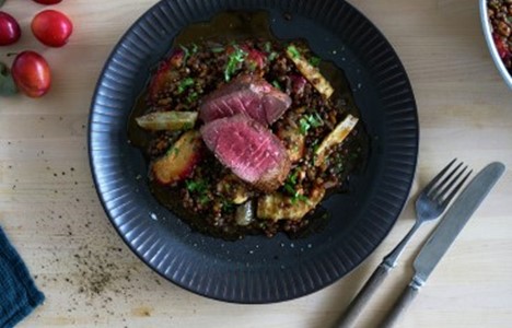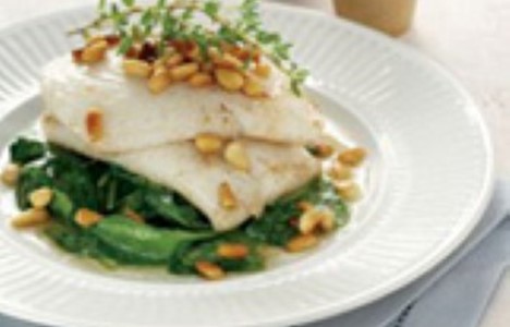Rødspette med ristede pinjekjerner og hvitløksspinat