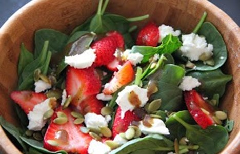 Jordbær og spinatsalat med balsamico vinaigrette dressing