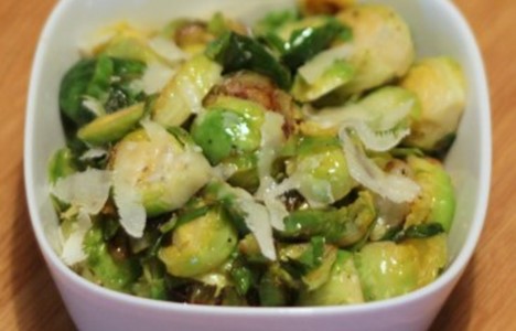 Lettstekte rosenkål med hvitløk, hvitvin og parmesan