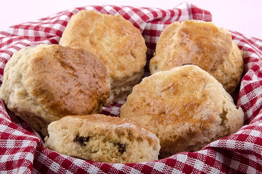 Legg dem på stekeplate med bakepapir. Skjær et kryss i hver kake med en spiss kniv for du steker dem pa 225 °C i ca. 12 min. Riv hver kake i fire deler etter steking. Deigen gir 16 scones.