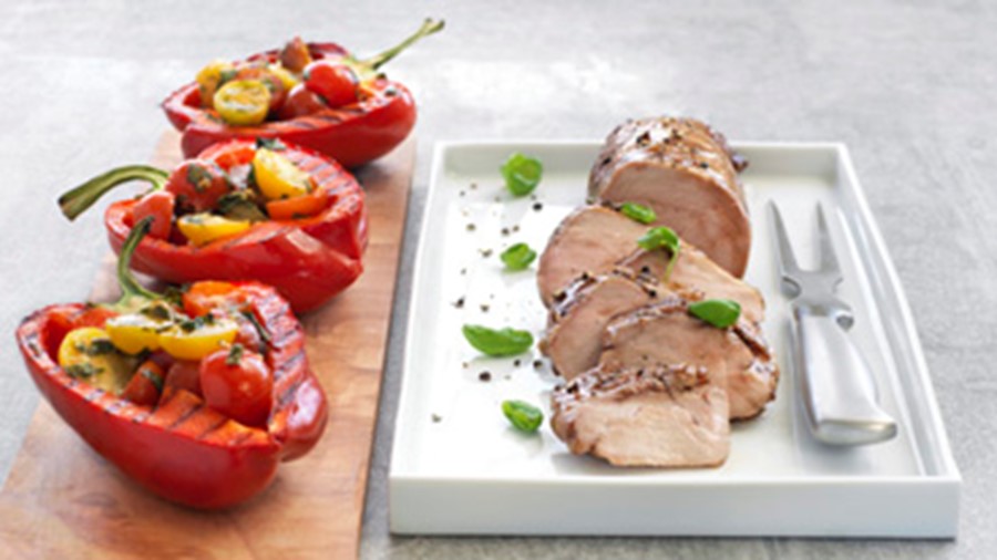 Skjær svinefilet fri for hinner, krydre med salt og pepper. Brun fileten raskt på alle sider på direkte varme. Legg den over på indirekte varme, ca. 15–20 minutter.