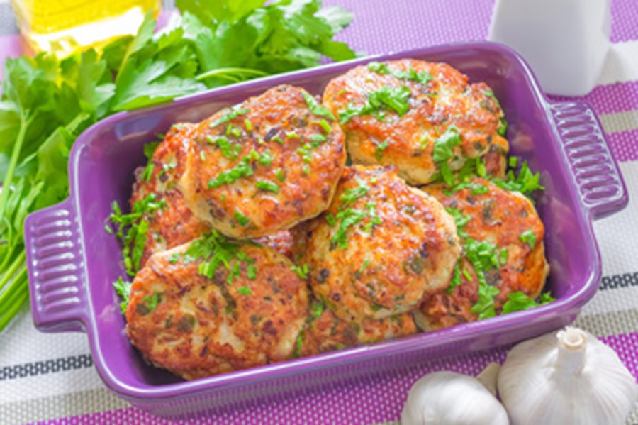 Lag passe store fiskekaker med en skje dyppet i kaldt vann. Trykk dem litt flate. Varm flytende margarin i en stekepanne. La den bli godt varm og stek fiksekakene pent brune på begge sider.