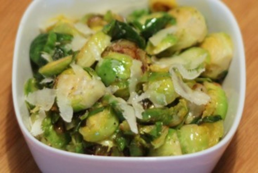 1 pakke frisk rosenkål (400 g), skjær bort stilken, skrell av et par blader og kutt i tre, fire på langs.