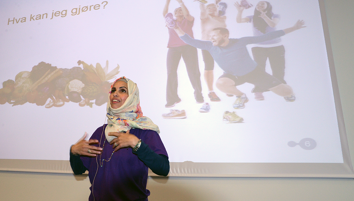 – Hva ser dere her, utfordret veileder Nour AlHouda fra Diabeteslinjen face2face på både norsk og arabisk, foran en enkel presentasjon av risikofaktorene for å utvikle diabetes type 2.