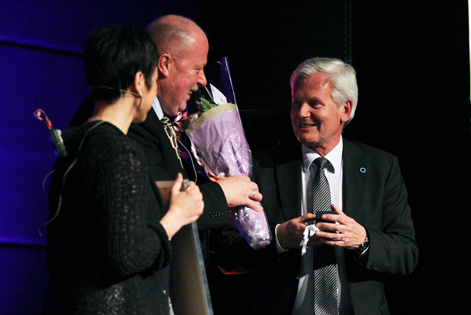Det var en svært overrasket mottaker som under Diabetesforbundets festmiddag på Diabetesforum – konferansen for helsepersonell som nettopp Dahl-Jørgensen er leder for, kom opp på scenen for å motta Diabetesforbundets hederstegn – gullnål med diamant. Prisen ble utdelt av forbundsleder Nina Skille og generalsekretær Bjørnar Allgot.