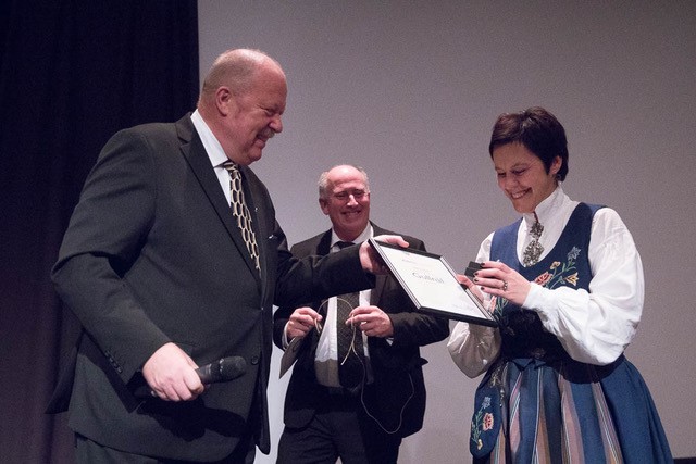 – Jeg skal si mye mer takk senere i kveld, så nå sier jeg bare takk. Takk, sa en rørt prismottaker foran en festkledd forsamling på aperitiff før jubileumsmiddagen på landsmøtet.