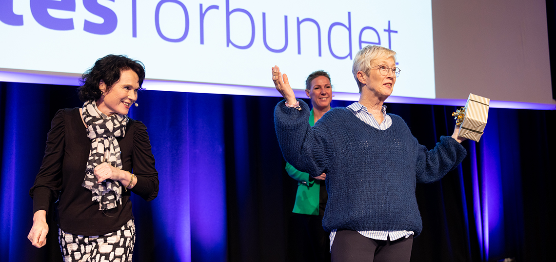 Forbundsleder Cecilie Waagan Roksvåg takket de tillitsvalgte fra scenen.