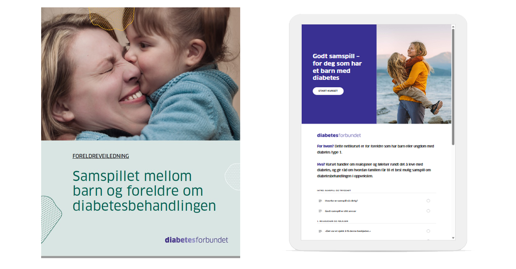 Den digitale veilederen for helsepersonell «Samspillet mellom barn og foreldre om diabetesbehandlingen» er tilgjengelig på diabetes.no. En trykket og digital veileder rettet mot foreldre er også tilgjengelig, og helsepersonell oppfordres til å bestille og dele ut denne til foreldre mens barnet er innlagt etter å ha fått diagnosen.